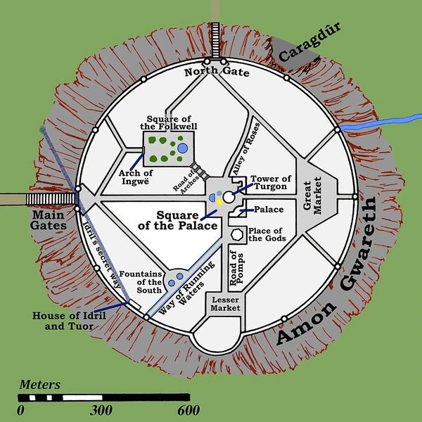 Gondolin "Yedi İsmin Şehri" olarak biliniyordu. Gnomish isimleri: